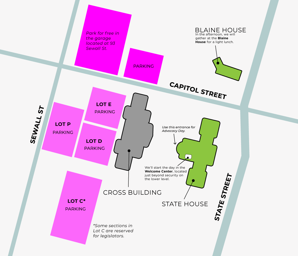 Advocacy Day is expected to begin at 9:00 AM and conclude at 2:30 PM. In the morning, we will hear from speakers and have opportunities to engage your legislators. In the afternoon, we will have a light lunch at the Blaine House. Click here to view the full agenda.